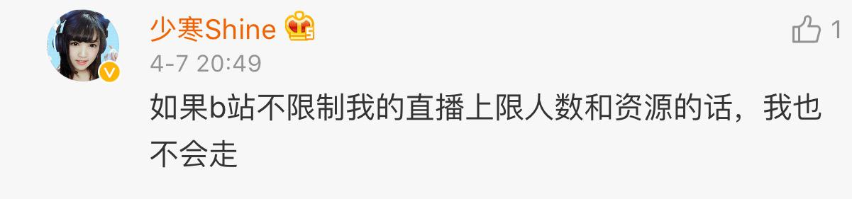 从这些信息来看,少寒出走无非是两个原因:1.不满B站克扣佣金的潜规则。2. 看不到事业发展的前景。