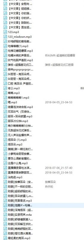 晚晚biu,原来的荔枝主播,后来转到B站做直播了,前面的文章曾经介绍过,但是我记得只分享了4部MP3声音,这次算是整全了,总共140部MP3,包含晚晚原来在荔枝直播时的作品,体积达到了6.5个G。截图不全,太长了。。。