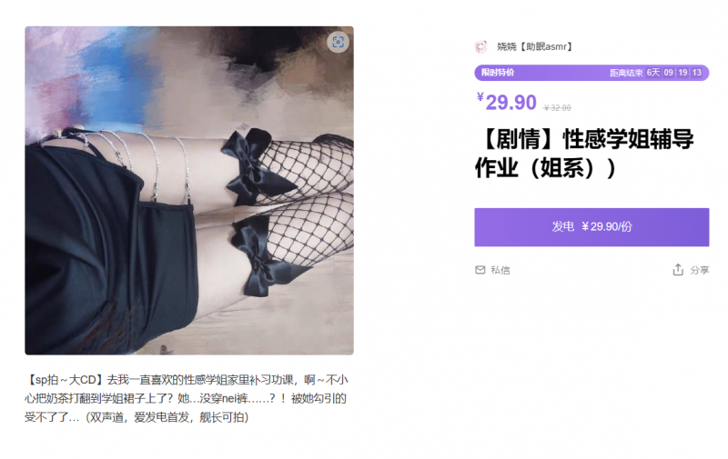 娆娆站内貌似没有过她的资源,这次分享的是来自站内某会员自购的娆娆爱发电4部声音,价值100多元,外加秋水爱发电视频1部。
