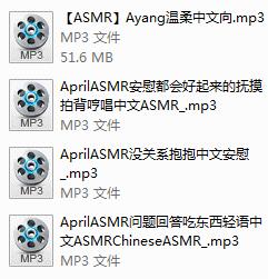 今天我给大家带来的就是Ayang的ASMR中文音声,共有4首mp3音频,分别是: